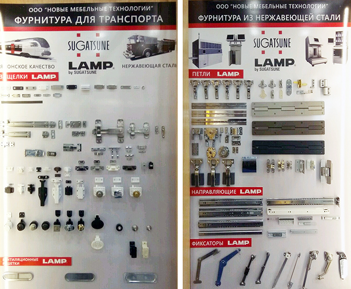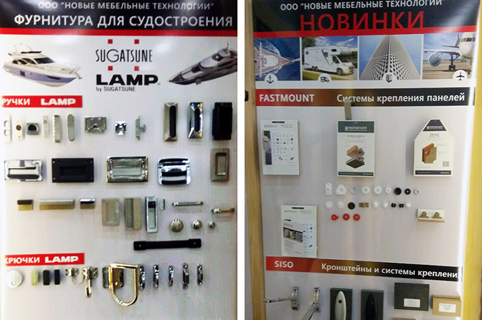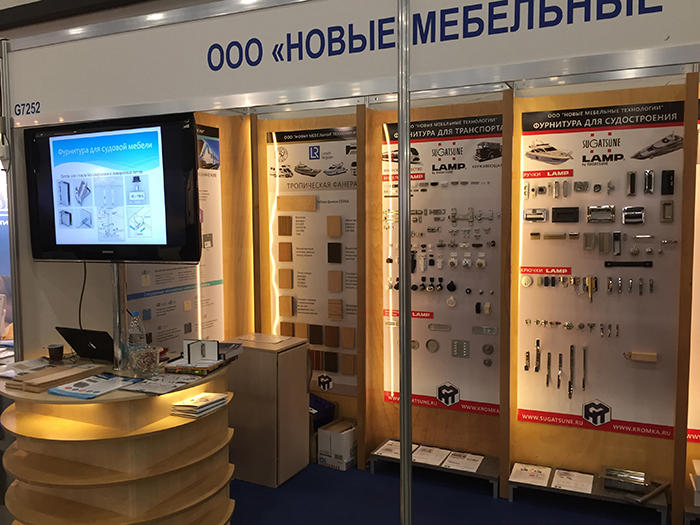 На нашем стенде была представлена актуальная фурнитура для морского и речного транспорта, катеров и яхт, новинки и интересные промышленные решения, а также фурнитура для мебели и строительства, материалы для отделки судовых помещений, силиконовые мембраны, алюминиевые профили различного функционального назначения.