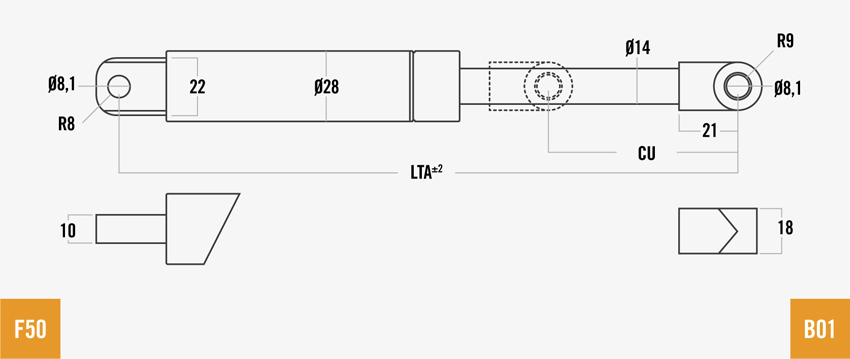 Газовые пружины серии AKS особенно подходят для применений, требующих ограниченных ходов и толчков вместе с минимальным размером.