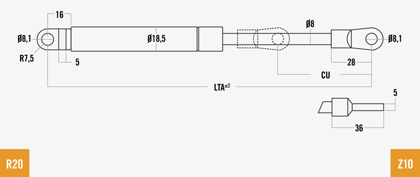 Газовые пружины серии AKS особенно подходят для применений, требующих ограниченных ходов и толчков вместе с минимальным размером.