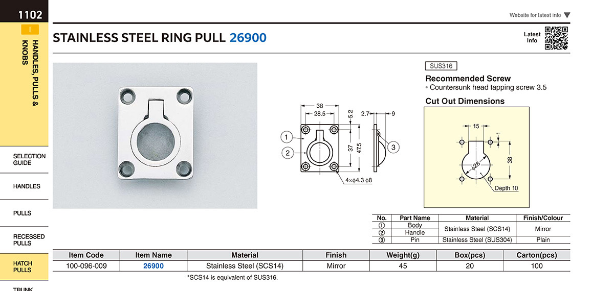 26900 Ручка люка, SUS316