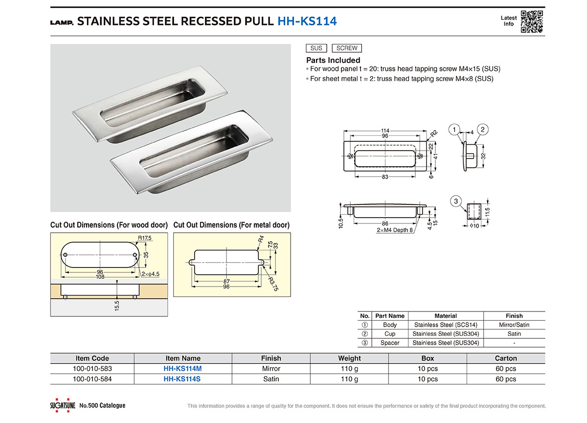 HH-KS114S Ручка врезная, нержавеющая сталь SCS14