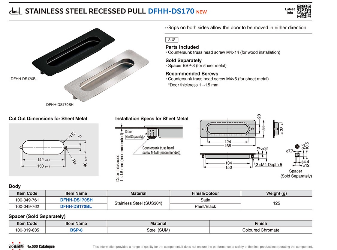 DFHH-DS170BL Ручка врезная SUS 304, черный