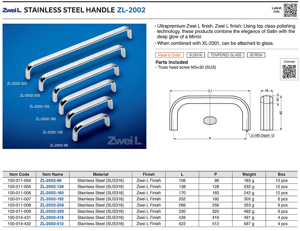 ZL-2002-192 Ручка ZWEIL из нержавеющей стали, 192 мм