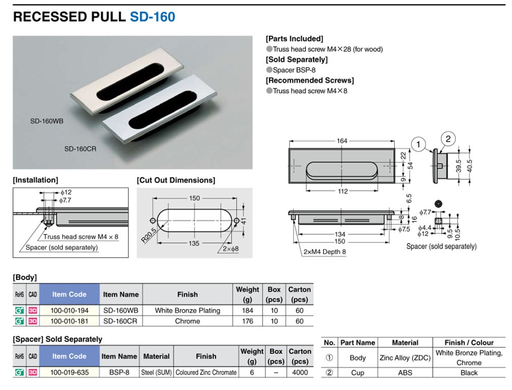 SD-160CR Ручка скрытая, хром