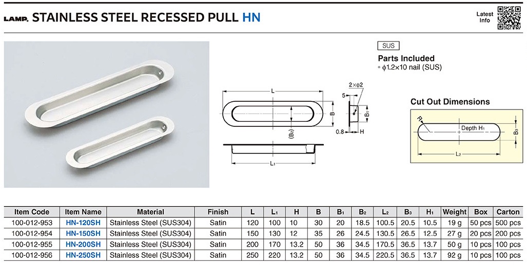 HN-150SH Ручка врезная, нержавеющая сталь