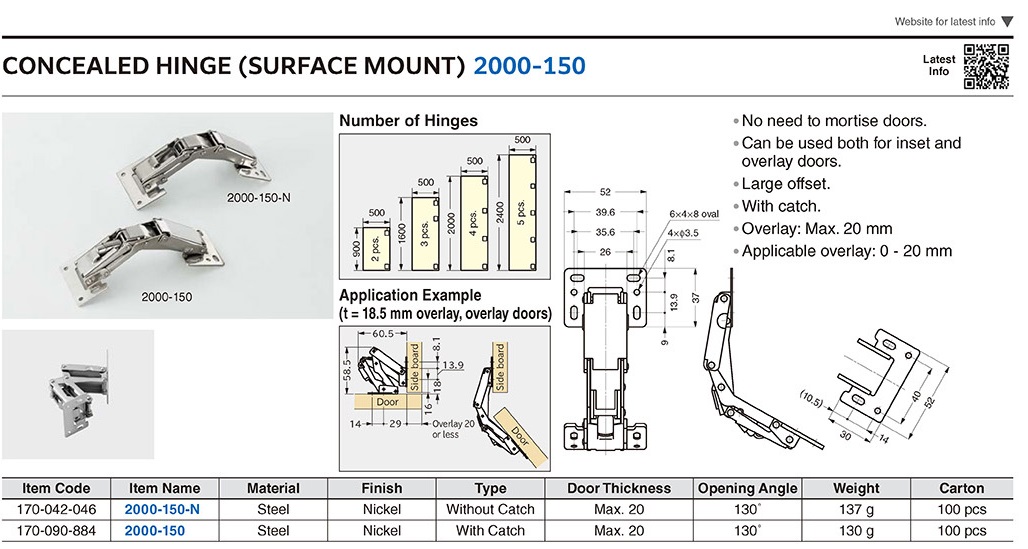 2000-150 Петля накладного монтажа, угол открывания 150º