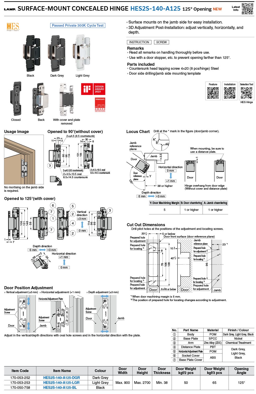 HES2S-140-A125-DGR Петля скрытая накладного монтажа, угол открывания 125º, тёмно-серый