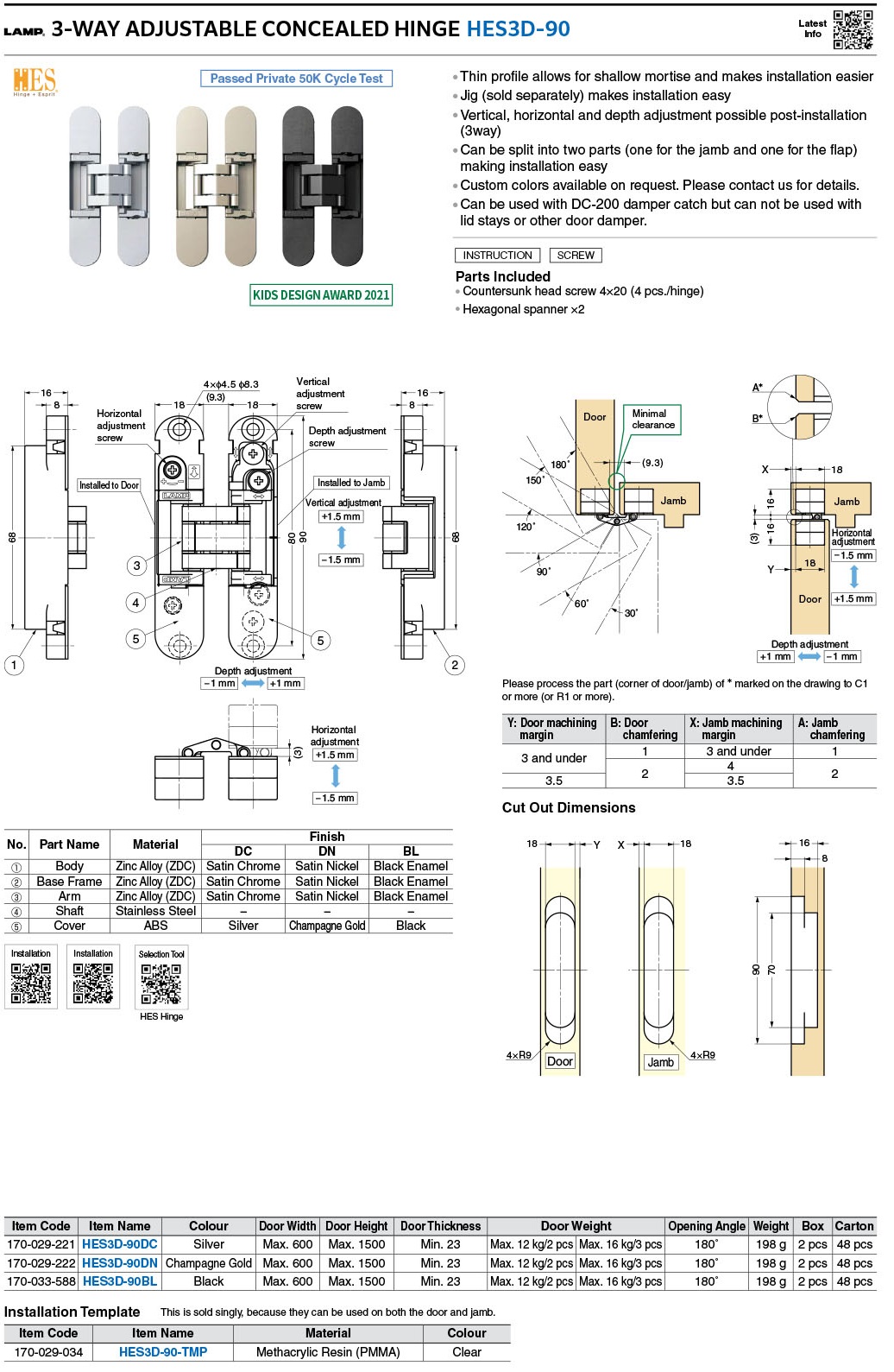 HES3D-90DC Петля врезная скрытая 3D регулировка, серебро
