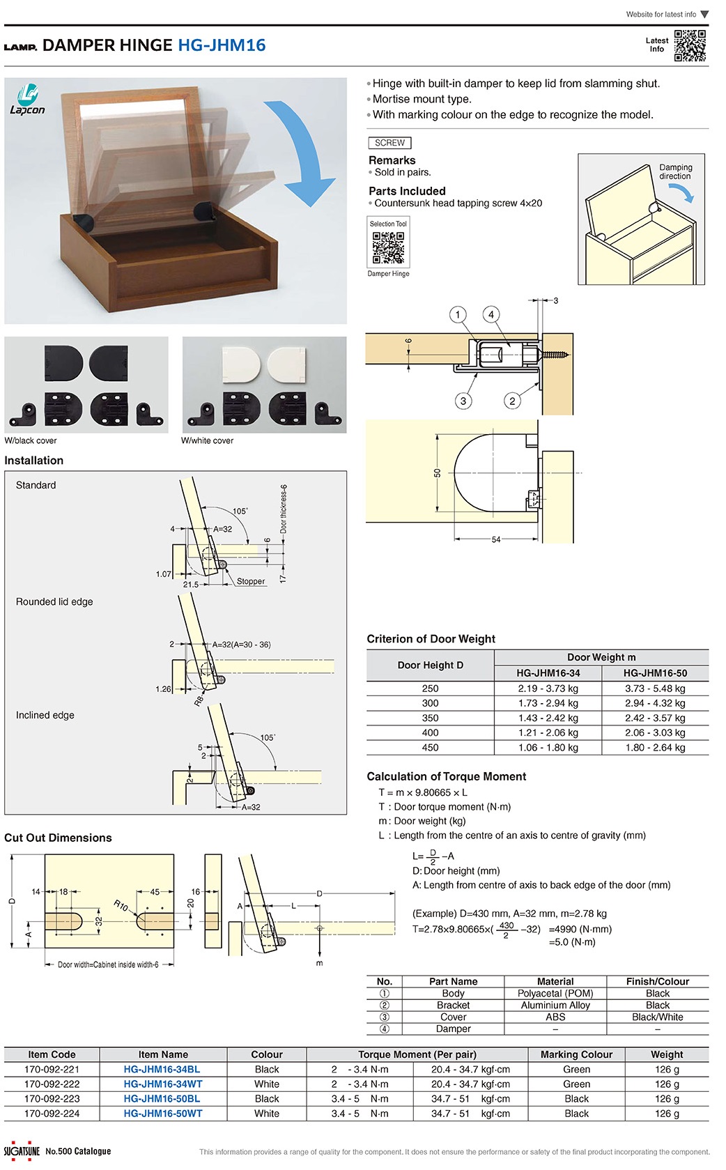 HG-JHM16-50BL Петля демпферная в комплекте с заглушкой, чёрный