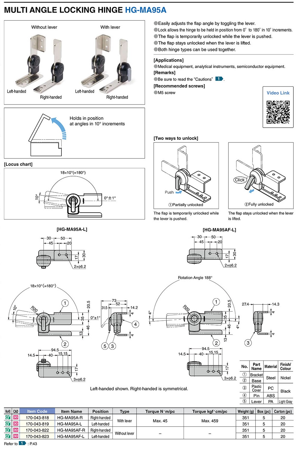 HG-MA95A-R Петля с фиксацией в нескольких положениях, правая