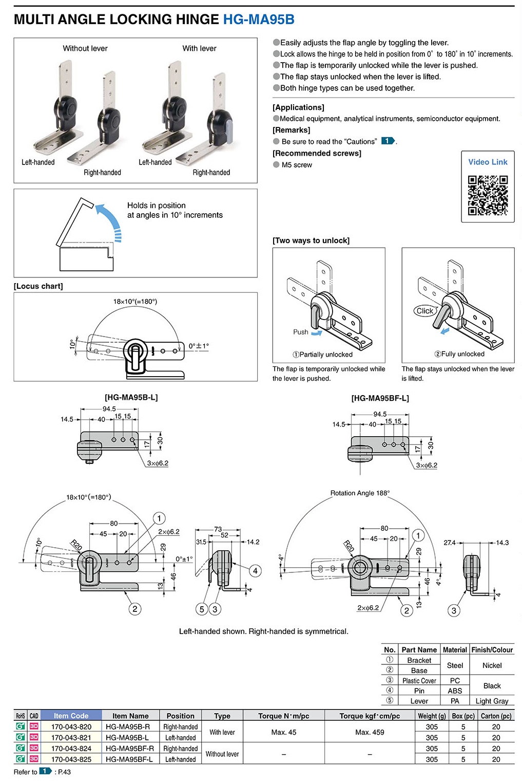 HG-MA95B-R Петля с фиксацией в нескольких положениях, правая