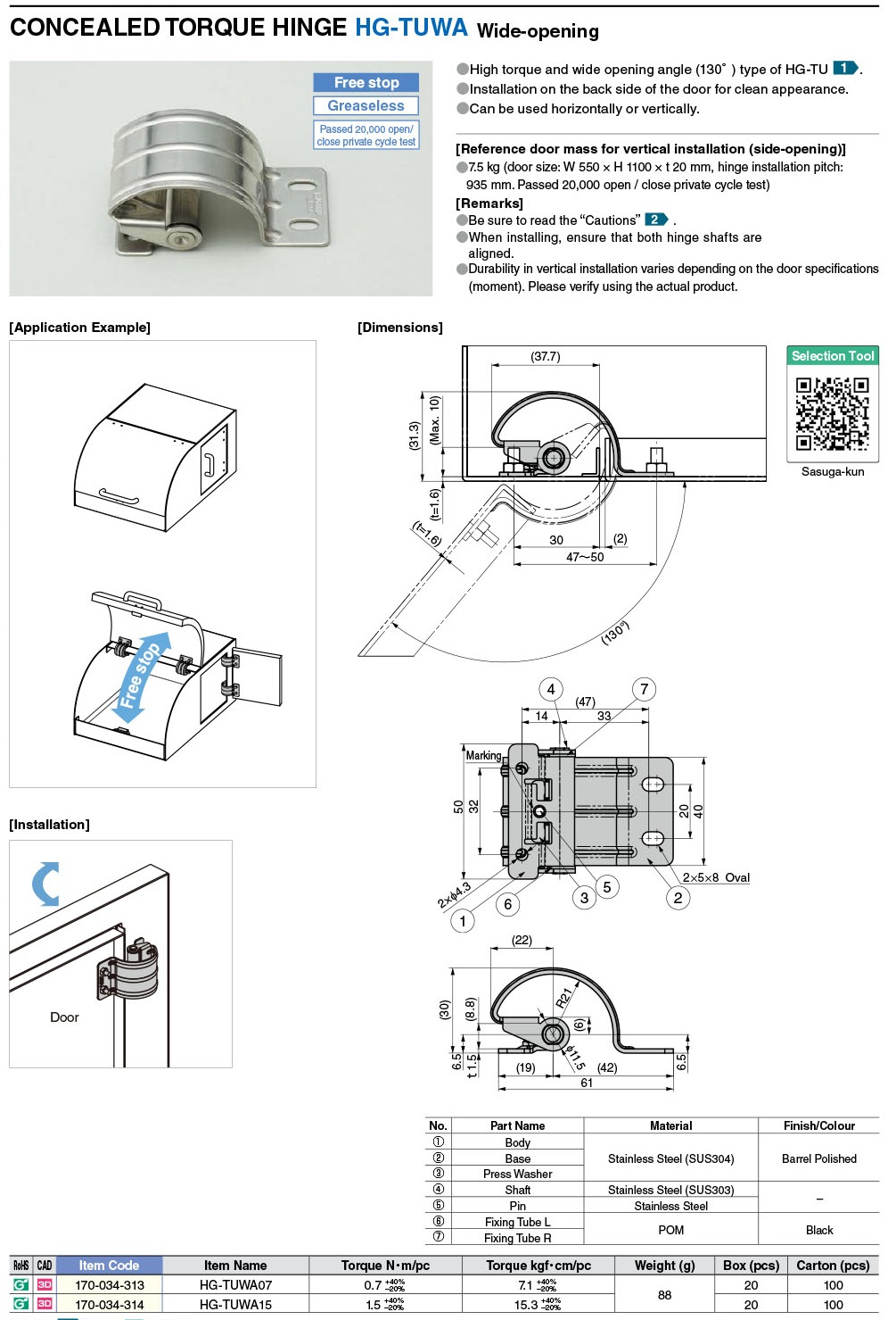 HG-TUWA15 Петля торсионная скрытая с усилием 1,5N*m/pc