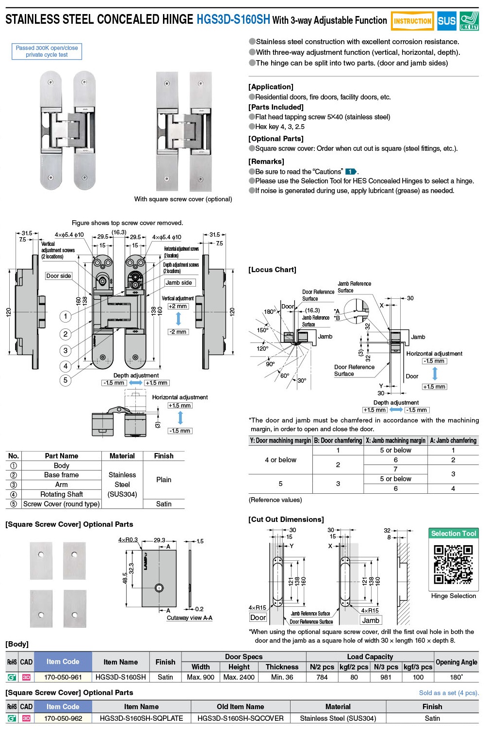 HGS3D-S160SH-SQPLATE Накладка квадратная для петли HGS