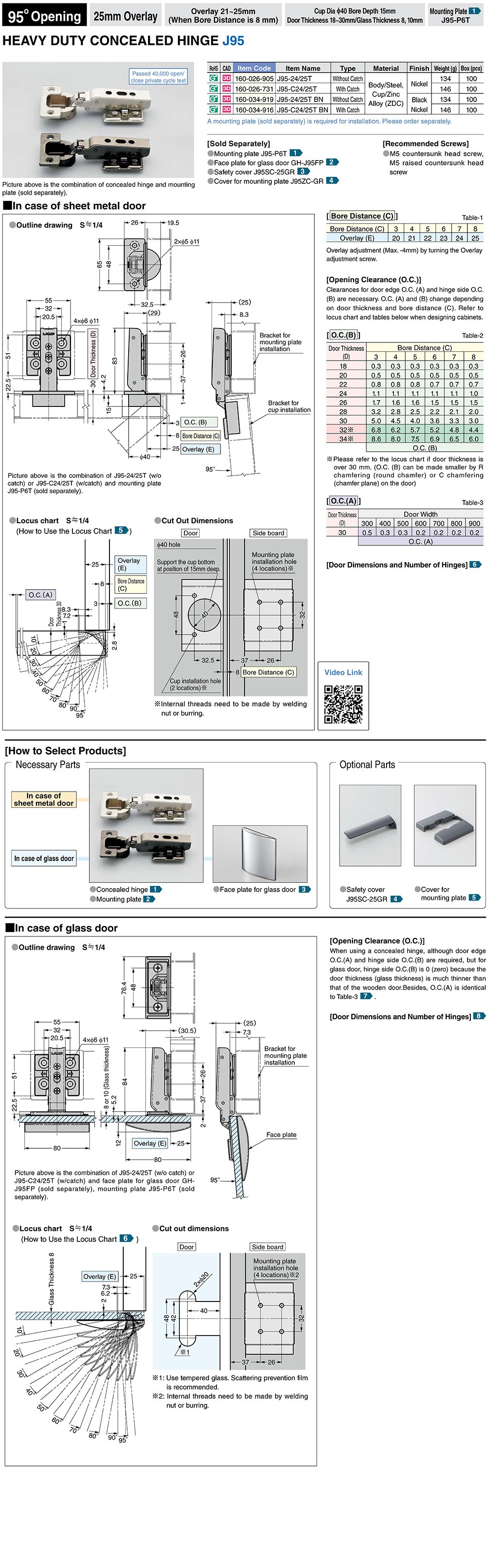 Угол открывания 95°, наложение 25мм