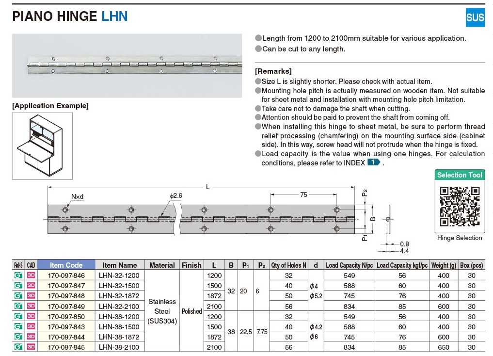 LHN-32-1200 Петля рояльная 32*0,8*1200 мм