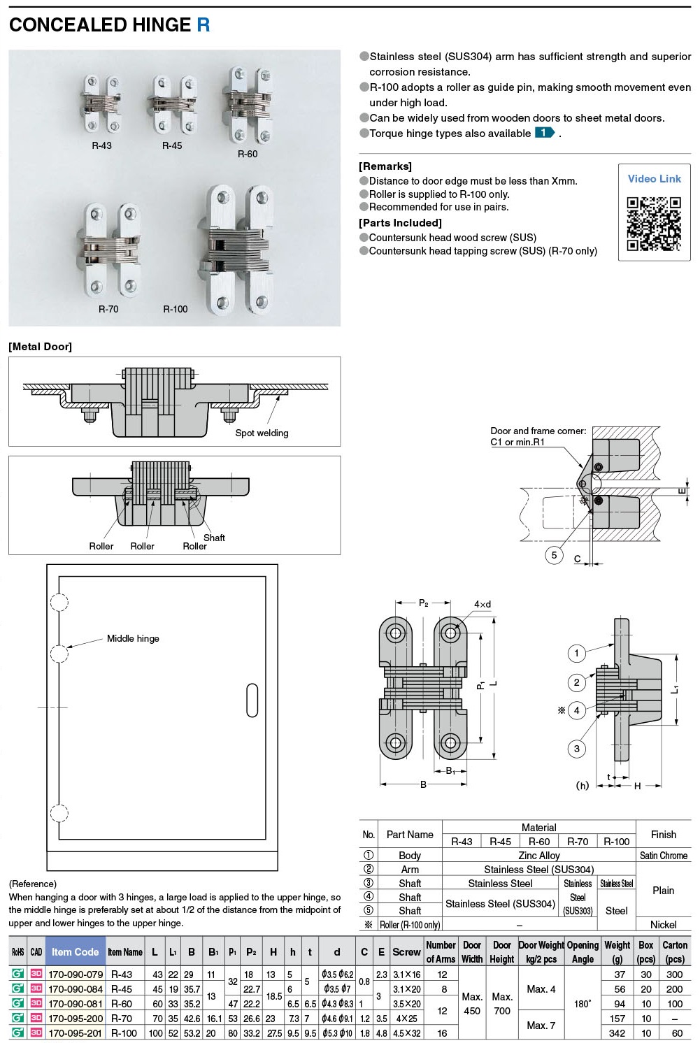 R-43 Петля врезная скрытая, угол открывания 180°