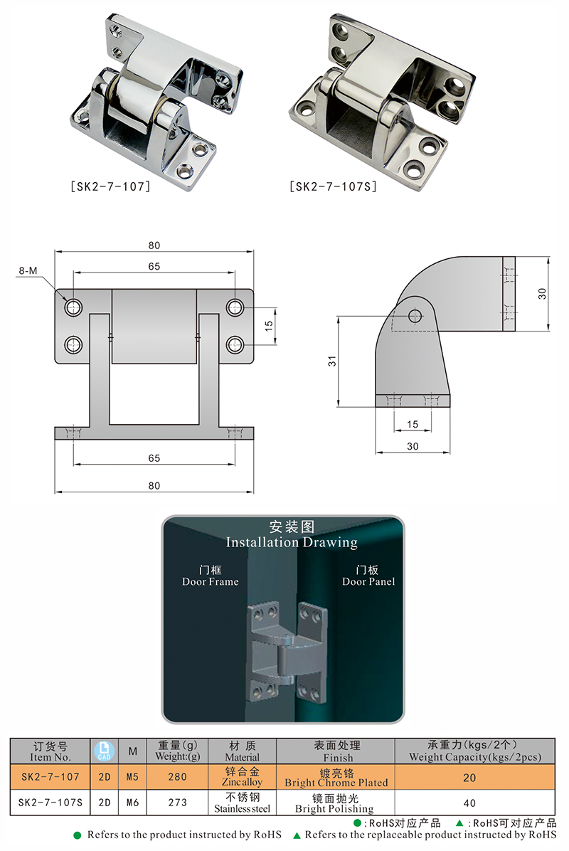 Материал: цинковый сплав (ZDC), нержавеющая сталь 304 (SUS304)