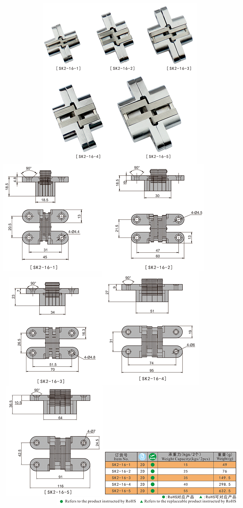 1. Низкий профиль с углом открывания 180º