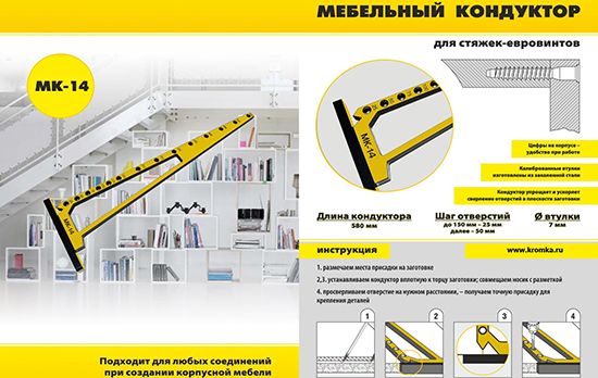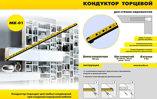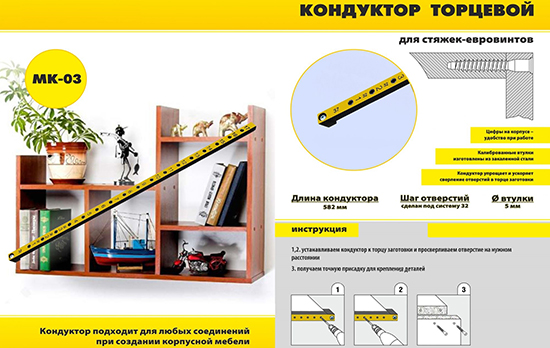 | Мебельный кондуктор "угольник" для плоскости под стяжки-евровинты (конфирмат) шаг 25/50. Длина: 578 мм. Шаг отверстий: до 150 мм -25 мм далее 50 мм. D отверстий: 7 мм