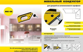 Мебельный кондуктор для сборки фасадов из рамочного фасадного алюминиевого профиля. D отверстий: 3.6 мм