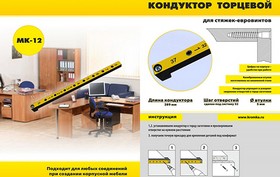 | Мебельный кондуктор укороченный торцевой для стяжек-евровинтов (конфирмат) система "32". Длина: 296 мм. Шаг отверстий: 1ое - 37мм далее - 32 мм. D отверстий: 5 мм