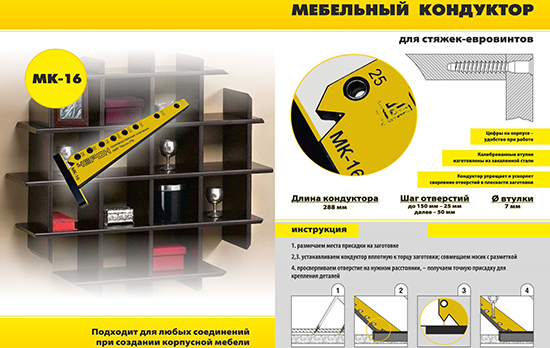 | Мебельный кондуктор "угольник малый " для плоскости под стяжки-евровинты шаг 25/50. Длина: 288 мм. Шаг отверстий: до 150 мм -25 мм далее 50 мм. D отверстий: 7 мм