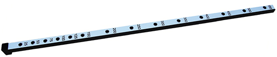 Мебельный кондуктор для плоскости под стяжки-евровинты (конфирмат) шаг 25/50. Длина: 587 мм. Шаг отверстий: до 150 мм -25 мм далее 50 мм. D отверстий: 7 мм