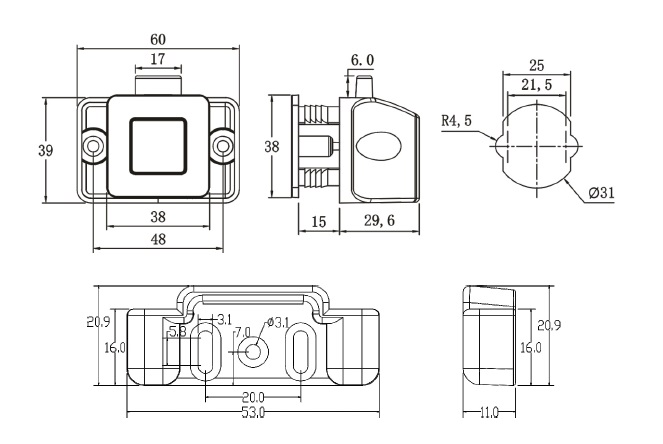 Замок нажимной квадратный 15мм, хром