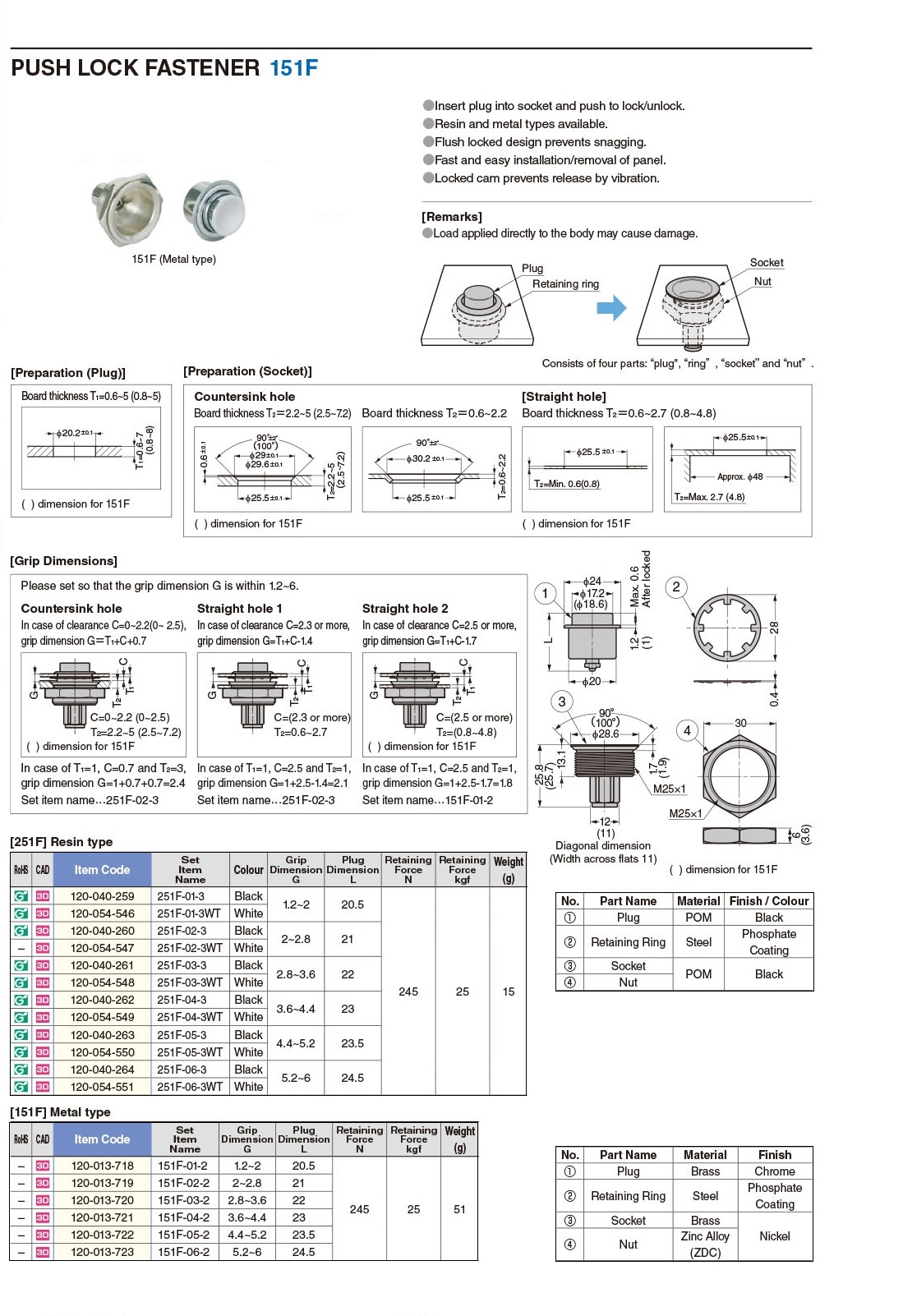 Фиксатор нажимной 151F-01-02; -02-2; -03-2; -04-2; -05-2; -06-2.
