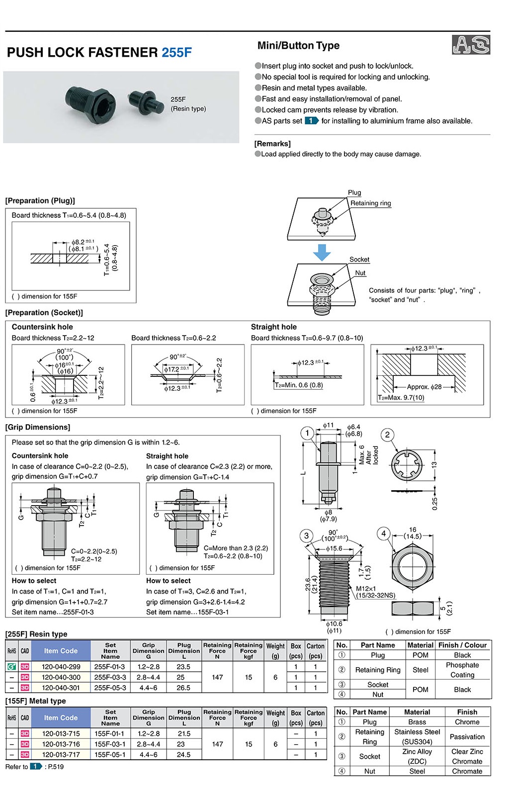 Фиксатор нажимной 255F-01-3; -03-3; -05-3.
