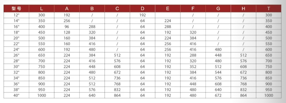 Доступные габариты: 12"(300 мм) - 40"(1000 мм)