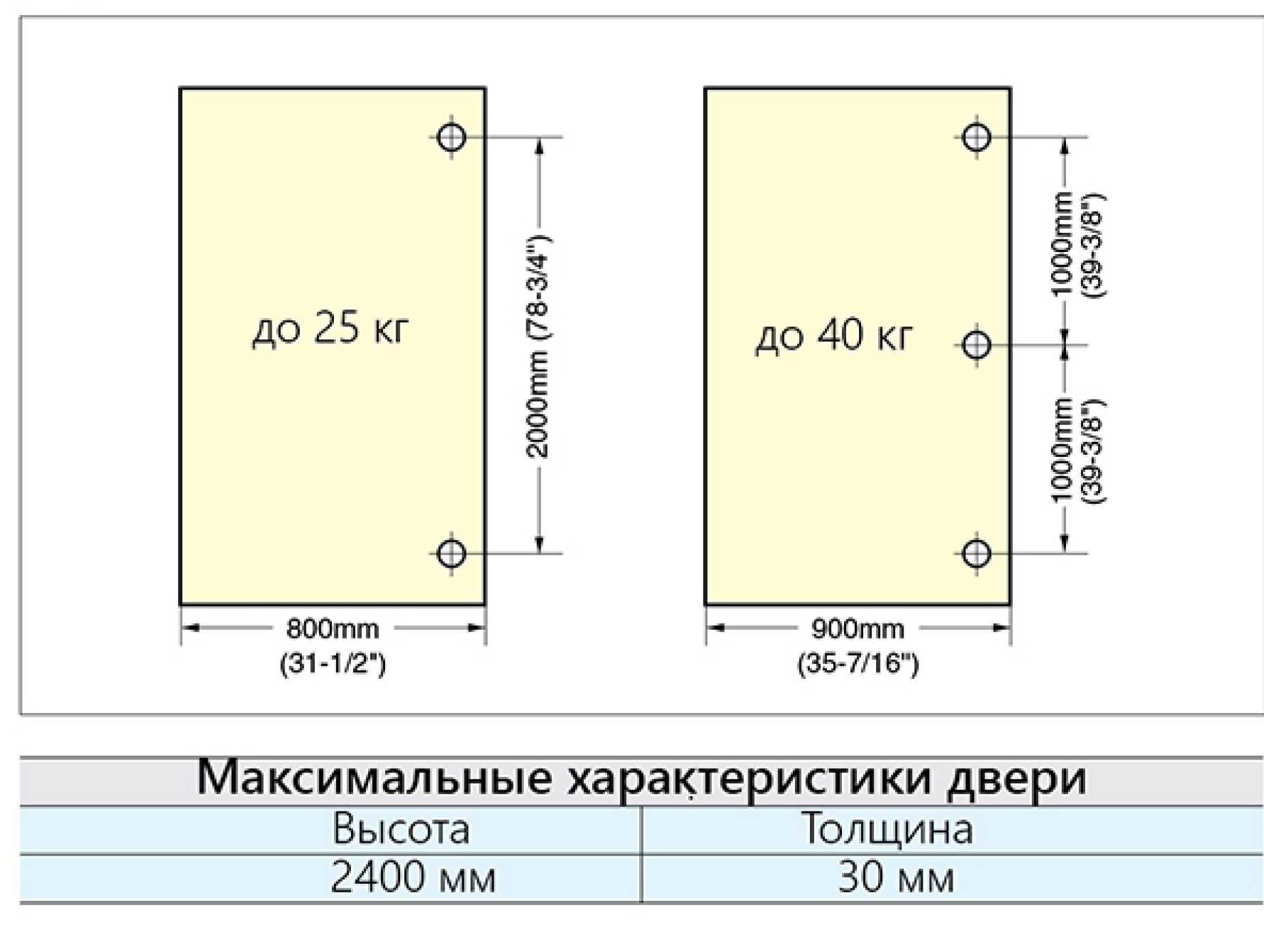 ● Макс. ширина двери: 800 мм /2шт., 900 мм/З шт.