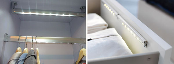 Компания "НМТ" представляет широкую линейку светодиодных лент (открытых, закрытых, герметичных), блоков питания и фурнитуры, а также алюминиевых профилей и прочих аксессуаров для организации качественного и надежного светодиодного освещения, которое преобразить любой интерьер и поможет создать стильную и уютную гардеробную.